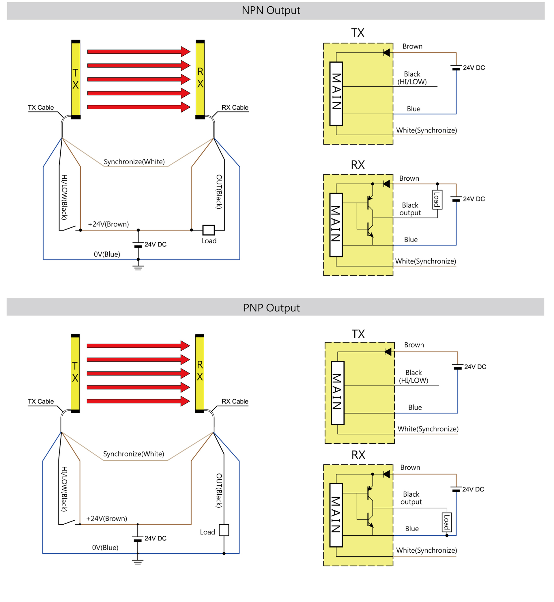 | Output mode | One set of outputs (NPN); model plus P (PNP output) | |||