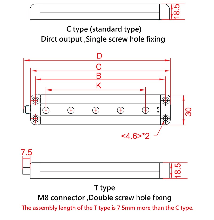| Connector | Direct output (Single hole fixing) for C type; M8 connector for T type | |||